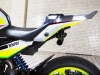 Le vert et le jaune néon sont certains d’attirer l’attention. Les couleurs claires étirent les lignes dynamiques du carénage. Le cœur de la moto, le groupe moto propulseur, est traité avec des couleurs sombres, ce qui abaisse encore visuellement le centre de gravité.