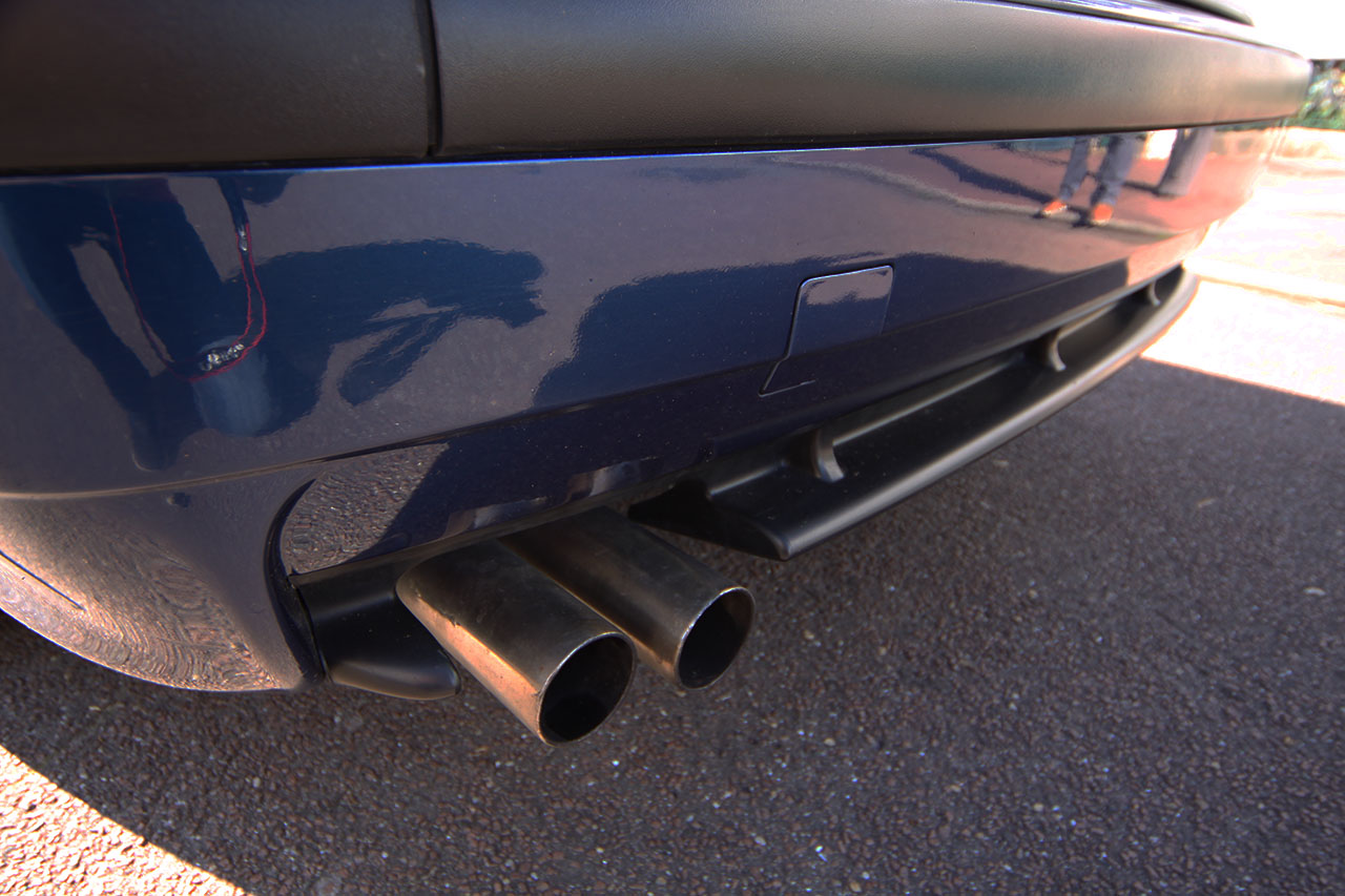 Alex me demande maintenant, tout simplement: “Tu veux l’essayer?”. Ah mais quelle question, bien sûr que oui! Bam je m’installe au volant, un tour de clé et vroummm le 6 cylindres ronronne comme un petit chat (de 40kg 😉 ) Ma première impression: un bon de 15 ans en arrière! Non pas pour le côté âgé de la bête mais pour le retour aux sources, sans chichi, ouai, ça c’est une bagnole de couillu, non aseptisée comme les plus modernes. Cela se confirme en roulant avec la direction ferme, la boite et l’embrayage raides. Mais le plus kiffant est la sensibilité de l’accélérateur: à peine effleuré, le L6 réagit…ahhh les moteurs atmo de l’époque. Là on peut le dire, c’était mieux AVANT!