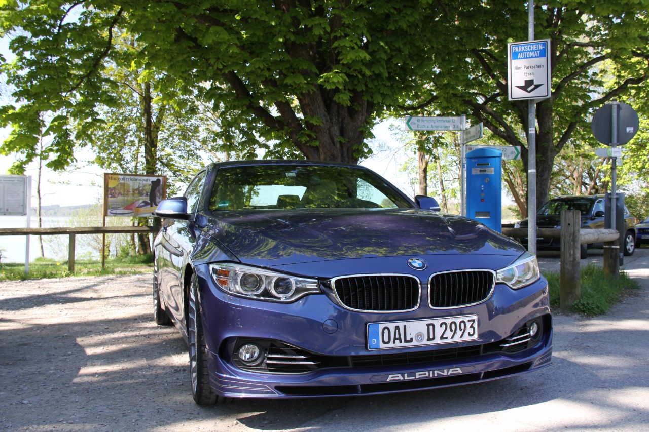 Après cette fameuse visite du siège d’ALPINA, notre hôte, Thomas, nous propose alors d’essayer 2 BMW ALPINA : une B3 BITURBO ALLRAD (6 cylindres essence bi-turbo sur base BMW Série 3) et une D4 BITURBO (6 cylindres diesel bi-turbo sur base Série 4). Je monte dans la B3 en passager, Thomas au volant, tandis que mes confrères de TheAutomobilist prennent possession de la D4. On démarre très fort avec Thomas, formé régulièrement par ALPINA à piloter leurs bolides, qui s’engage sur une portion de route illimitée pour taquiner facilement les 270km/h ! Ah oui, ok, on ne rigole donc pas dans une BMW ALPINA !