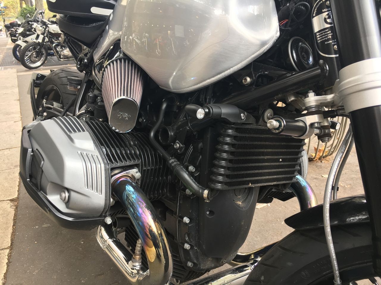 Une fois la claque du superbe design passé, j’ai redouté sa largeur (moteur boxer et guidon qui en imposent) et son poids. Là, si vous avez le même sentiment, je vous invite à l’essayer, il s’estompe dès que vous l’enfourchez, cette BMW RnineT est d’une maniabilité exemplaire, on en oublie très vite ses 220kg ! J’ai pu me faufiler entre les voitures comment si j’avais un vélo 🙂