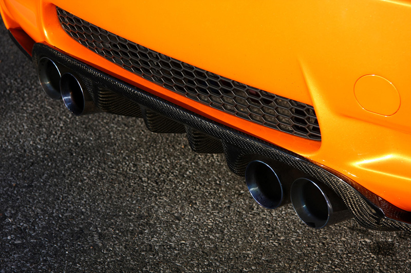 De plus, l’intérieur complet est en fibre de carbone (même les sièges contruit par Manhart Racing), recouvert bien entendu d’alcantara, sans oublier un affichage numérique qui vous donne les G encaissés…