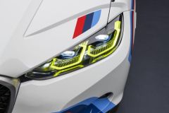 Avec leurs contours plats, les phares créent un point de mire caractéristique sur la route. Les projecteurs BMW Laser Light éclairent en jaune, aussi bien lors du scénario de bienvenue après le déverrouillage des portes que lorsque les feux de croisement et de route sont activés, faisant ainsi référence aux voitures de course GT à succès. Ce détail est une référence subtile étroitement liée au sport automobile et à la voiture de compétition la plus performante de BMW M GmbH, la BMW M4 GT3, qui a remporté le championnat des pilotes et le championnat par équipe de DTM en 2022. Son moteur de base est le 6 cylindres en ligne qui équipe la BMW 3.0 CSL. La BMW M4 GT3 a remporté le championnat dès le début de sa carrière sur circuit, tout comme l’historique BMW 3.0 CSL, qui a remporté le championnat européen des voitures de tourisme dès sa première saison.