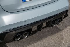 Montage extrêmement ferme de la transmission, M à huit vitesses, et du moteur, spécifique au modèle. Le système d’échappement, qui comprend une double sortie d’échappement à commande électrique et un silencieux arrière en titane sur mesure dont le poids a été réduit, crée une sonorité moteur distinctive, particulièrement musclée et émotionnellement engageante. Notons aussi que de la hauteur de caisse de la BMW M4 Competition Coupé a été abaissée de huit millimètres.
