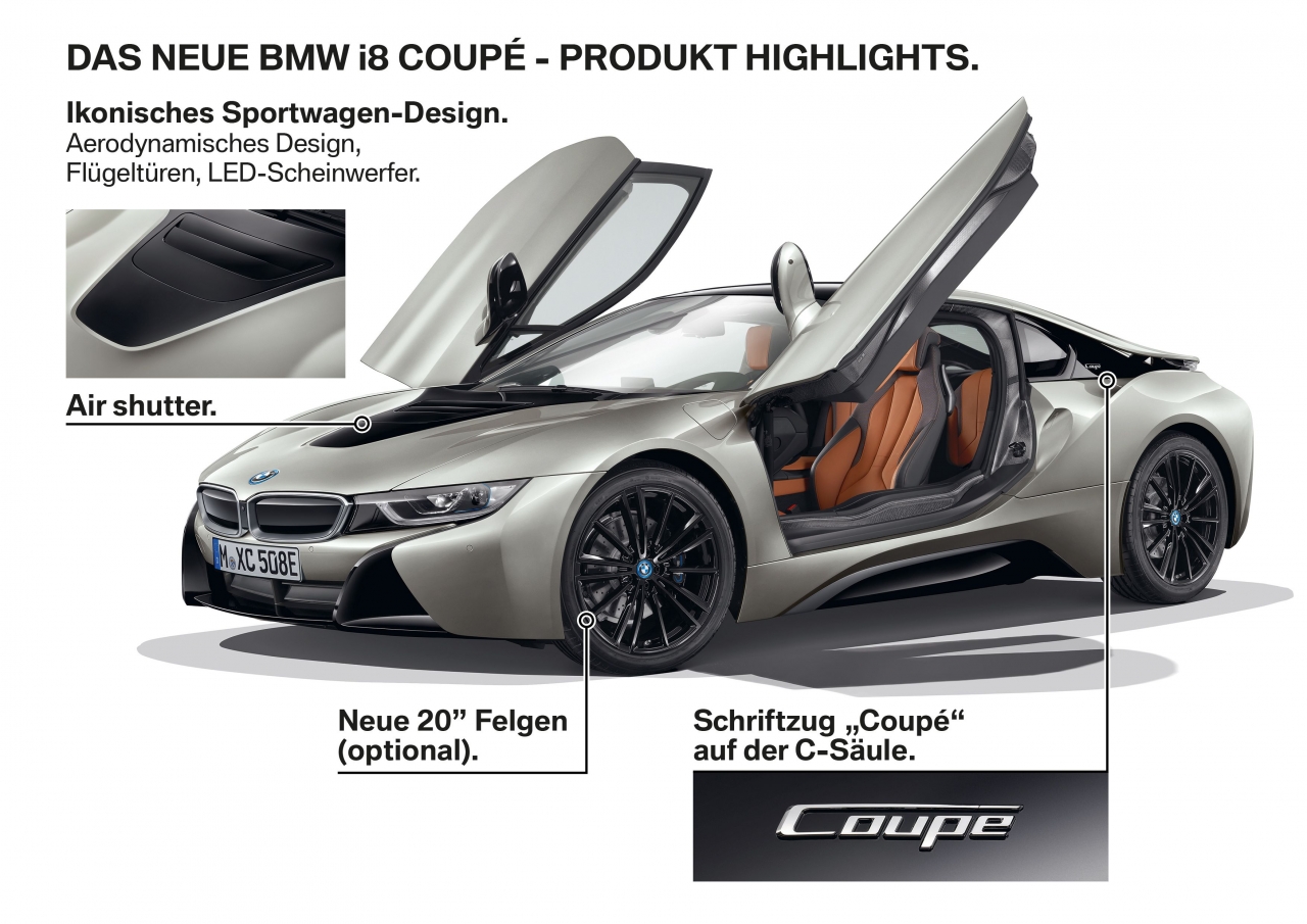 Et le modèle “standard” BMW i8 devient BMW i8 Coupé, pour se différencier de ce nouveau modèle Roadster.